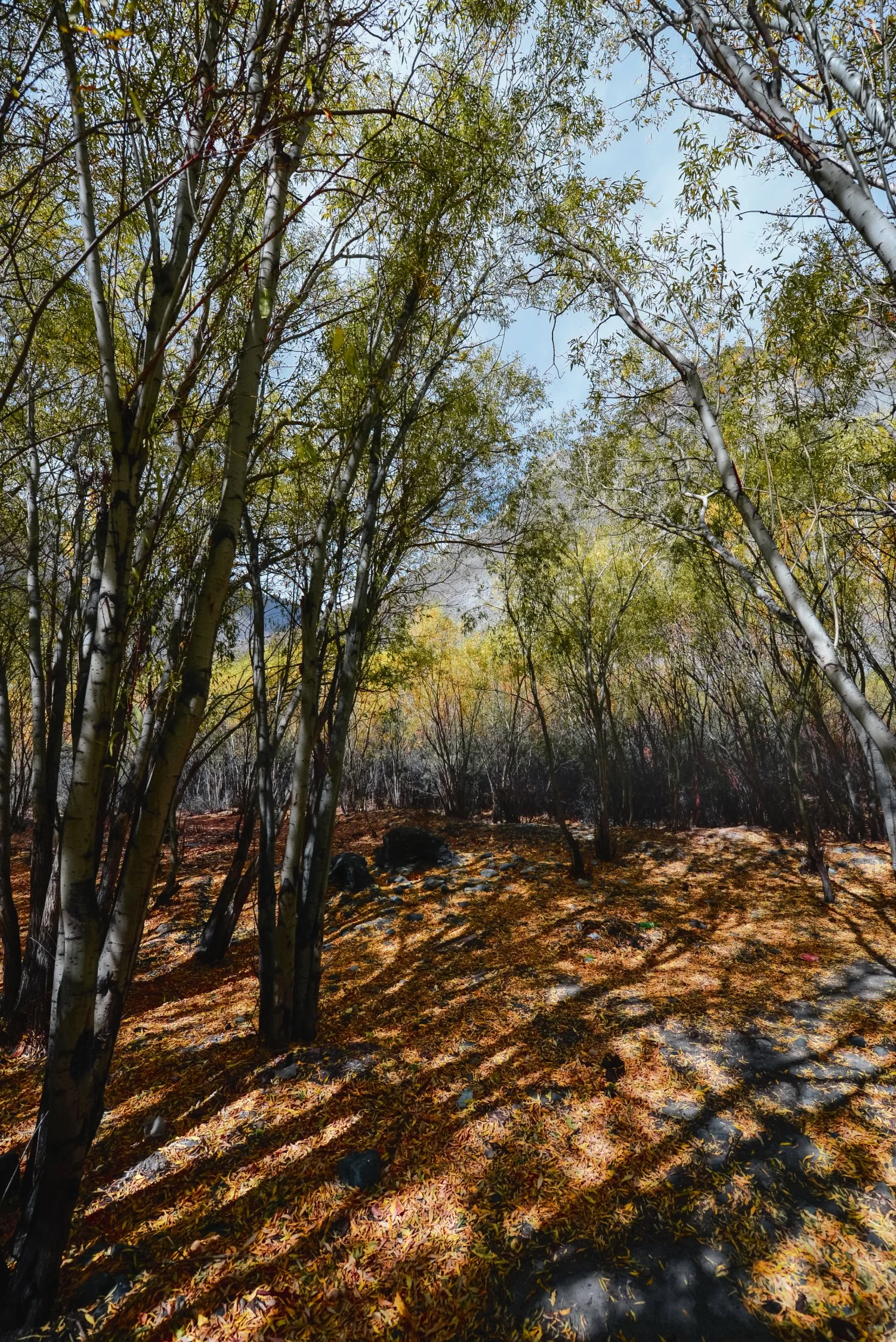 Step into the quiet of the woods. This piece captures that perfect autumn moment where the canopy is still holding onto its green, but the floor is a carpet of copper and rust. The dappled sunlight cuts through the trunks, creating long, dramatic shadows. It’s a peaceful, grounding window into nature for your home.
